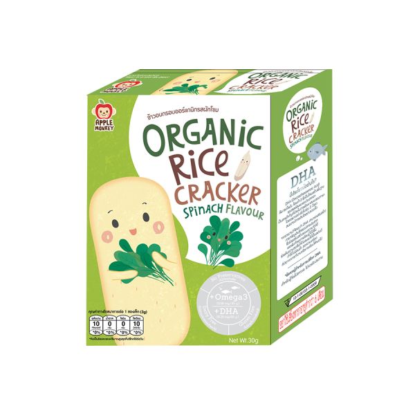 - Apple Monkey Rice Cracker is a healthy snack for your little one which has vegetable as an ingredient. Apple Monkey's organic rice cracker is suitable for one-the-go snack. DHA extract from Tuna. DHA-Omega3 helps increase neuronal growth which has benefits for brain's memory and brain development. This helps support your little one learning skill.