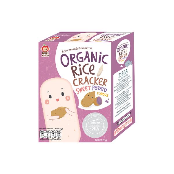 - Apple Monkey Rice Cracker is a healthy snack for your little one which has vegetable as an ingredient. Apple Monkey's organic rice cracker is suitable for one-the-go snack. DHA extract from Tuna. DHA-Omega3 helps increase neuronal growth which has benefits for brain's memory and brain development. This helps support your little one learning skill.Β