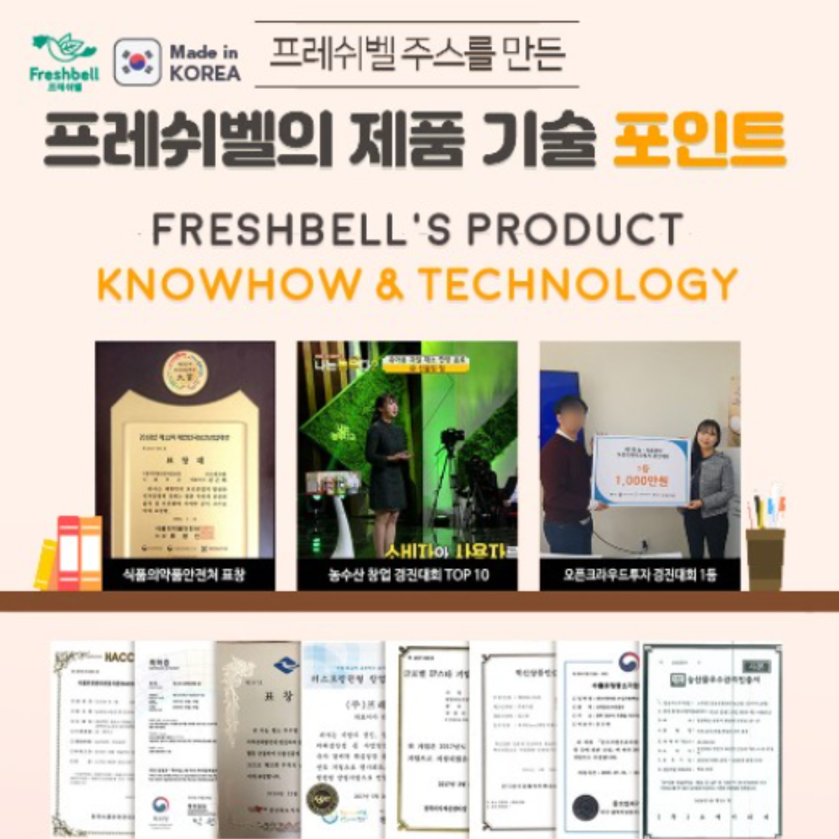 - Freshbell Korea, a company that specialises & create NFC (Not-From-Concentrate) Juices from Premium & Fresh Fruits. The Company is certified as CFP Company that makes low Carbon Footprint Product (CFP) with premium ingredients. "Good Juice comes from Good Ingredients".