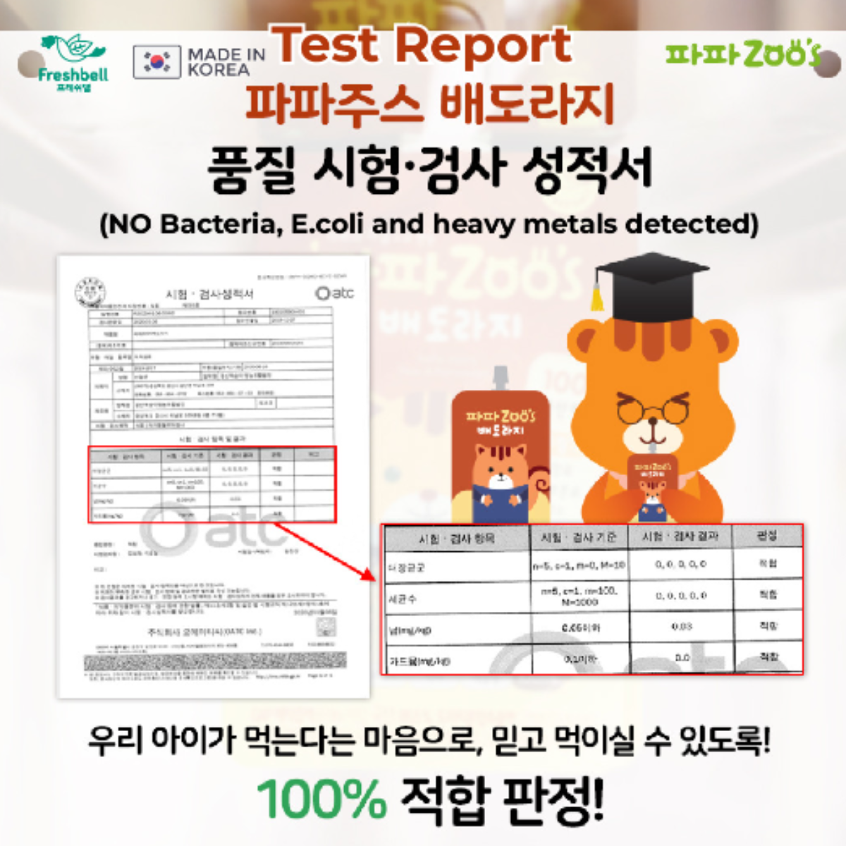 - NO Bacteria, E.coli and heavy metals detected.