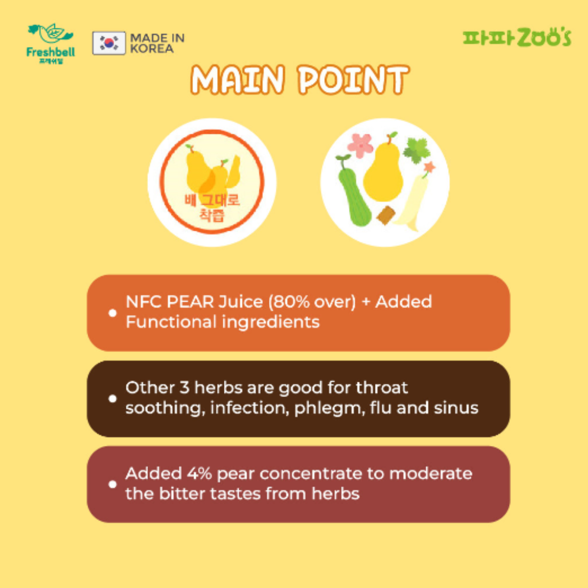 - GAP Certified Only use GAP certified Pears as ingredients which was produced and processed following the guidelines from Korea ministry of Agriculture, food and rural affairs.