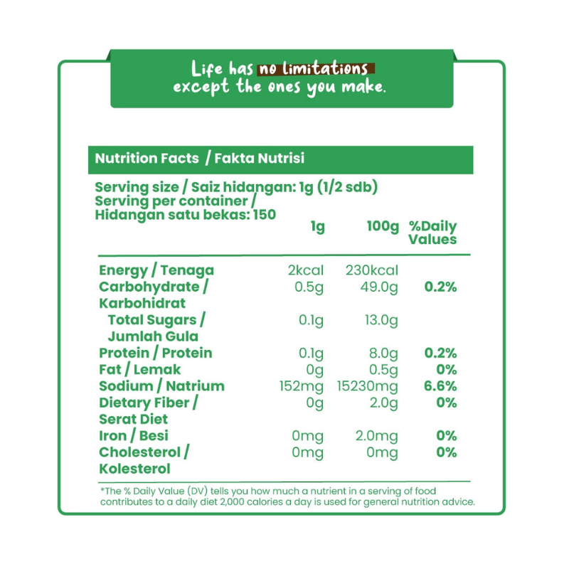 Using modern technology and special technique in extracting relevant ingredients from green vegetables, we are now able to enjoy the natural seasoning tasting as a substitute to MSG.
