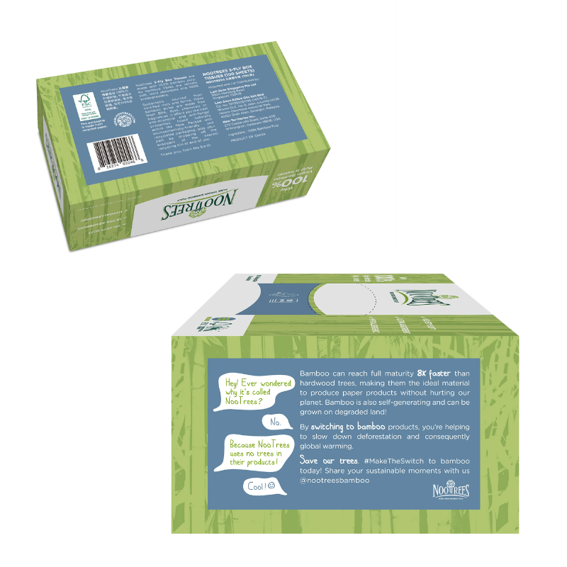 Do you know that more than 27,000 tress are cut down daily just to make toilet paper? Do your part and save the environment with Nootrees. Nootrees is a range of paper products made from bamboo pulp. Bamboo is known to be a renewable and sustainable source.